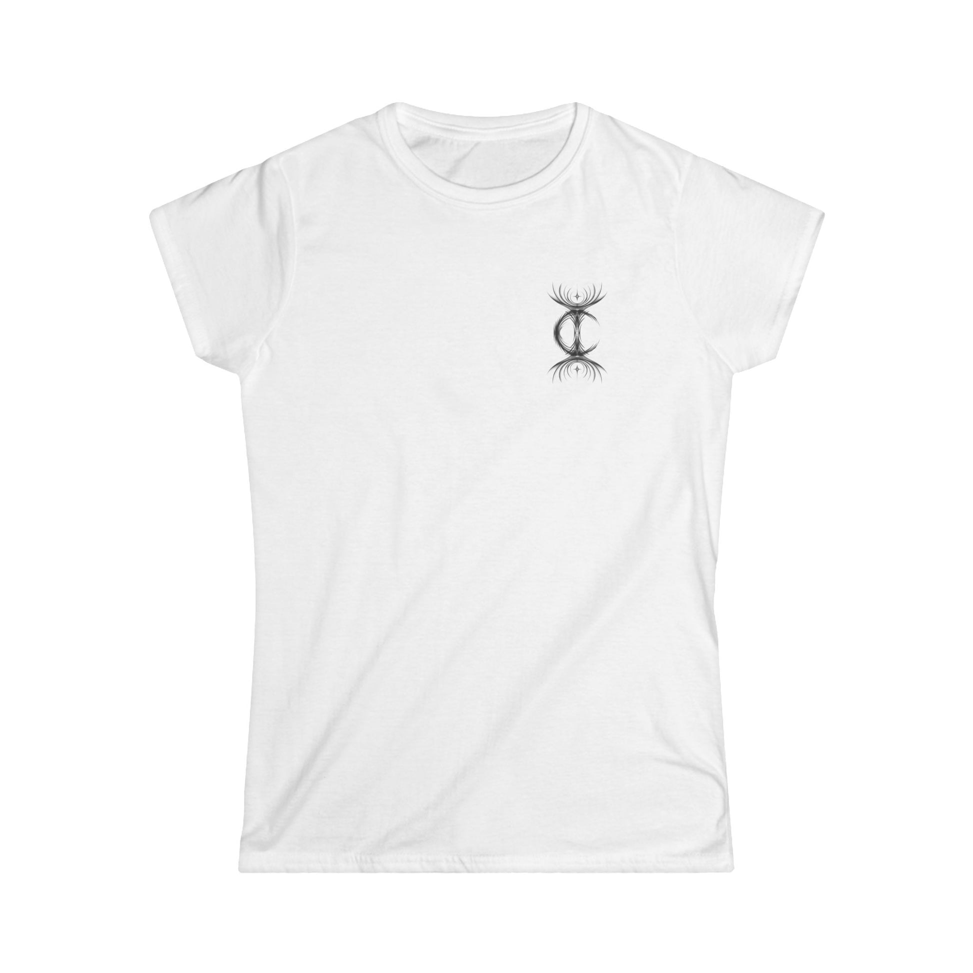 Light and breathable, this semi-fitted tee carries a fierce, inked attitude without feeling heavy. A small, moon-like sigil sits over the heart while the back shows a raw, sketch-style crow framed in a ring of barbed detail and stamped with bold lettering — like a traveling tattoo turned wearable. It’s meant for days when you want to wear your edge quietly up front and let the full story reveal itself when you turn around. Comfortable enough for long shifts at the studio or late-night shows, the soft ringspun cotton and tear-away label keep things simple and comfortable against the skin.